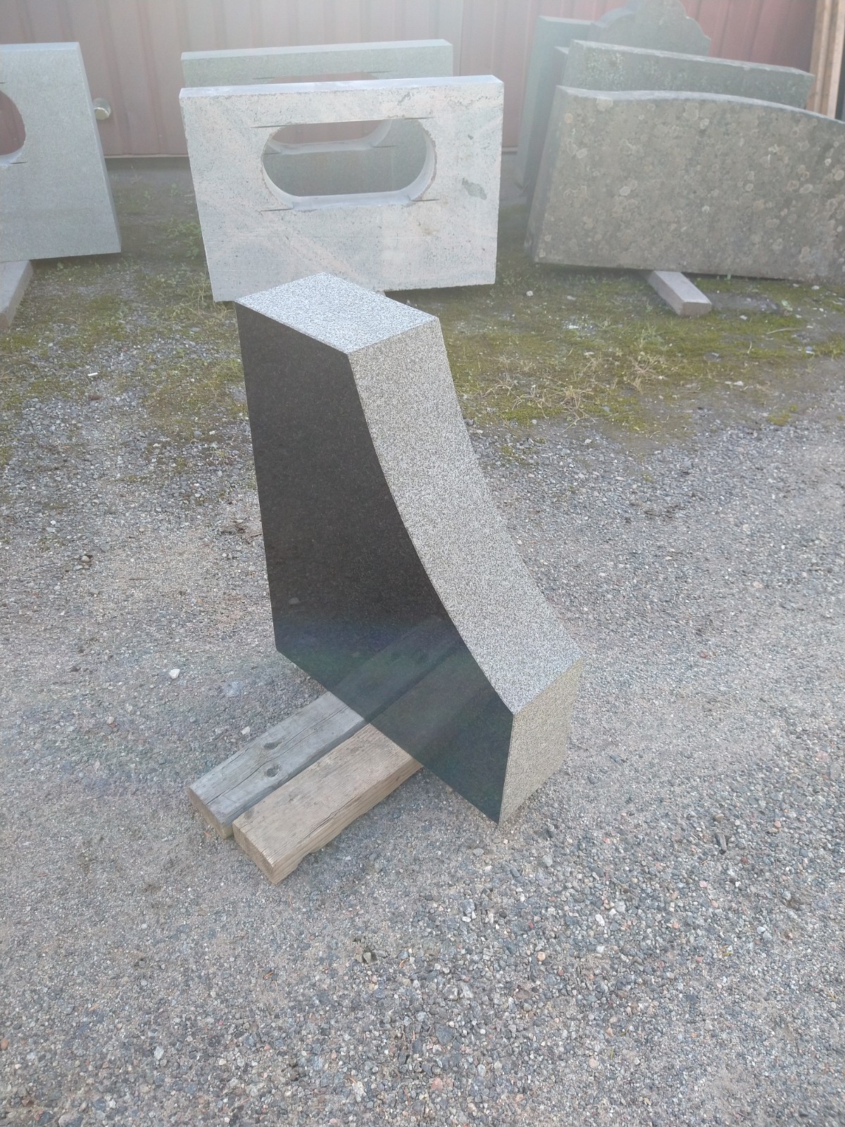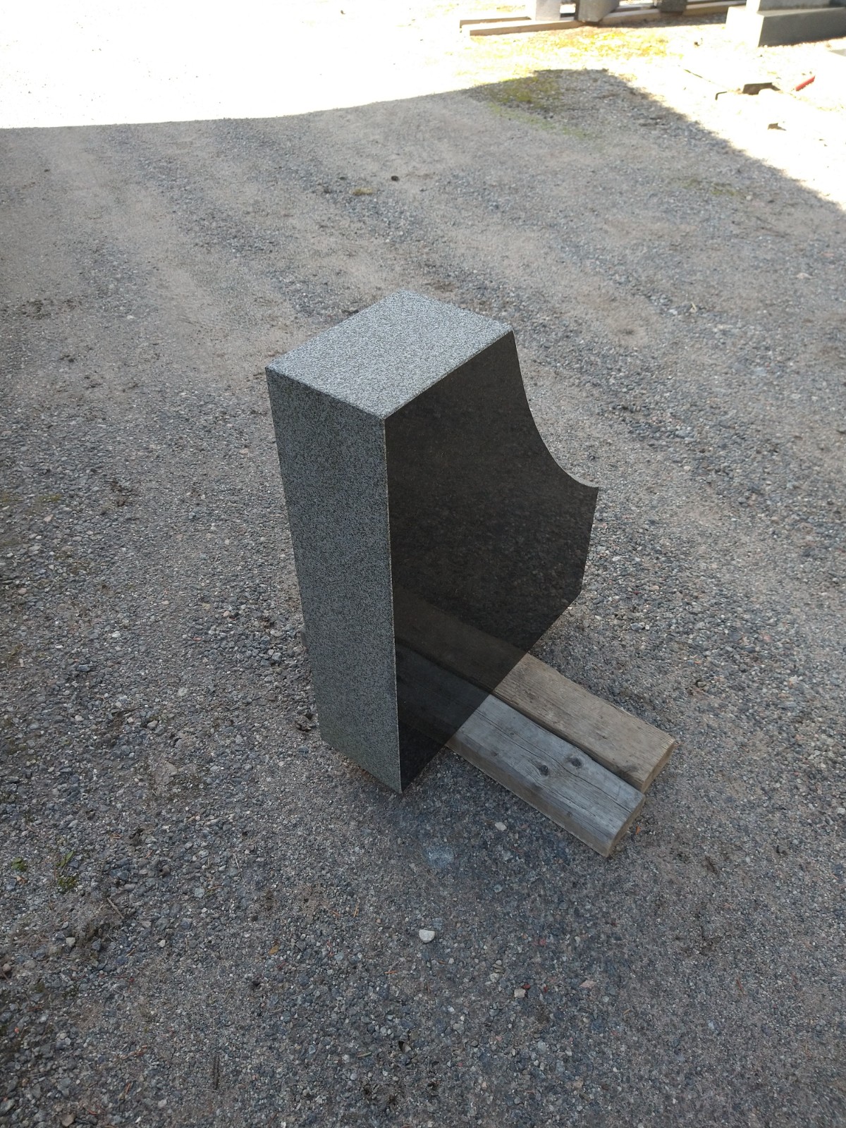 Oikeaan reunaan koverretun kohdan kanssa kaunis suomalaisesta mustasta kivestä tehty matala kivi on tyylikäs ja arvokkaan näköinen muistomerkki. Kiveen voidaan kaivertaa tai asentaa pronssikohokirjaimin nimi/aikatiedot ja lisäksi siihen sopii hienosti erilaiset pronssivalulaatat.