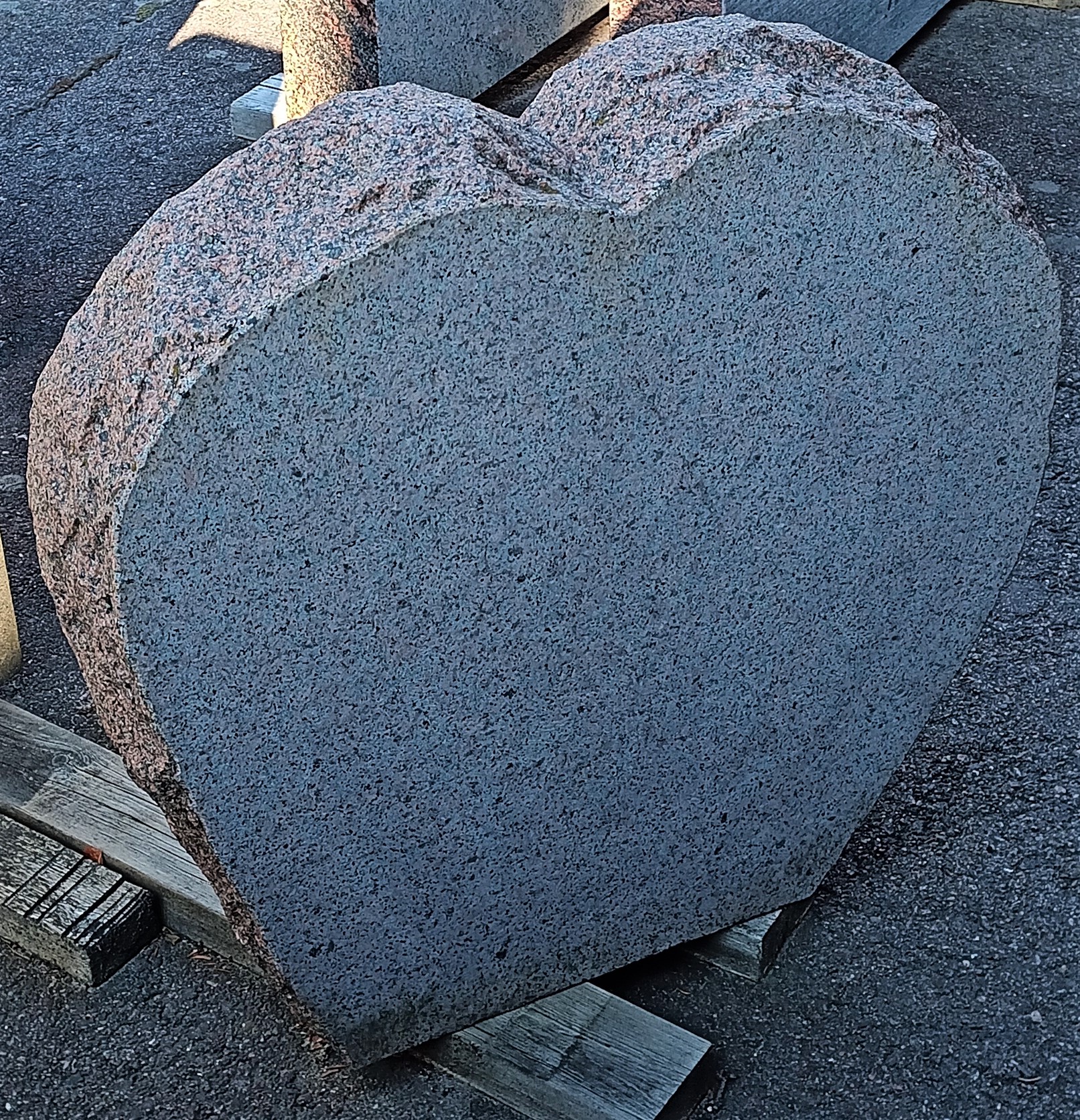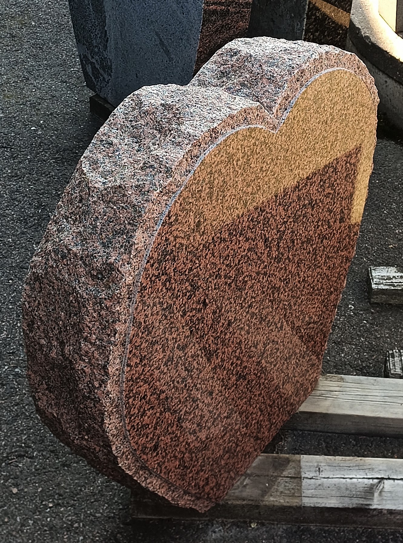 Muistomerkin taulupintaan on timanttityöstetty kehys samaan sydämen muotoon. Muuten kivi on käsin ympärilohkottu. Kivi pysyy tukevasti pystyssä ja on näyttävän näköinen klassisella värikuosilla varustettuna. Kiveen voidaan kaivertaa tai asentaa pronssikohokirjaimin nimi/aikatiedot ja lisäksi siihen sopii hienosti esim. ruostumattomasta teräksestä tehdyt valulaatat.